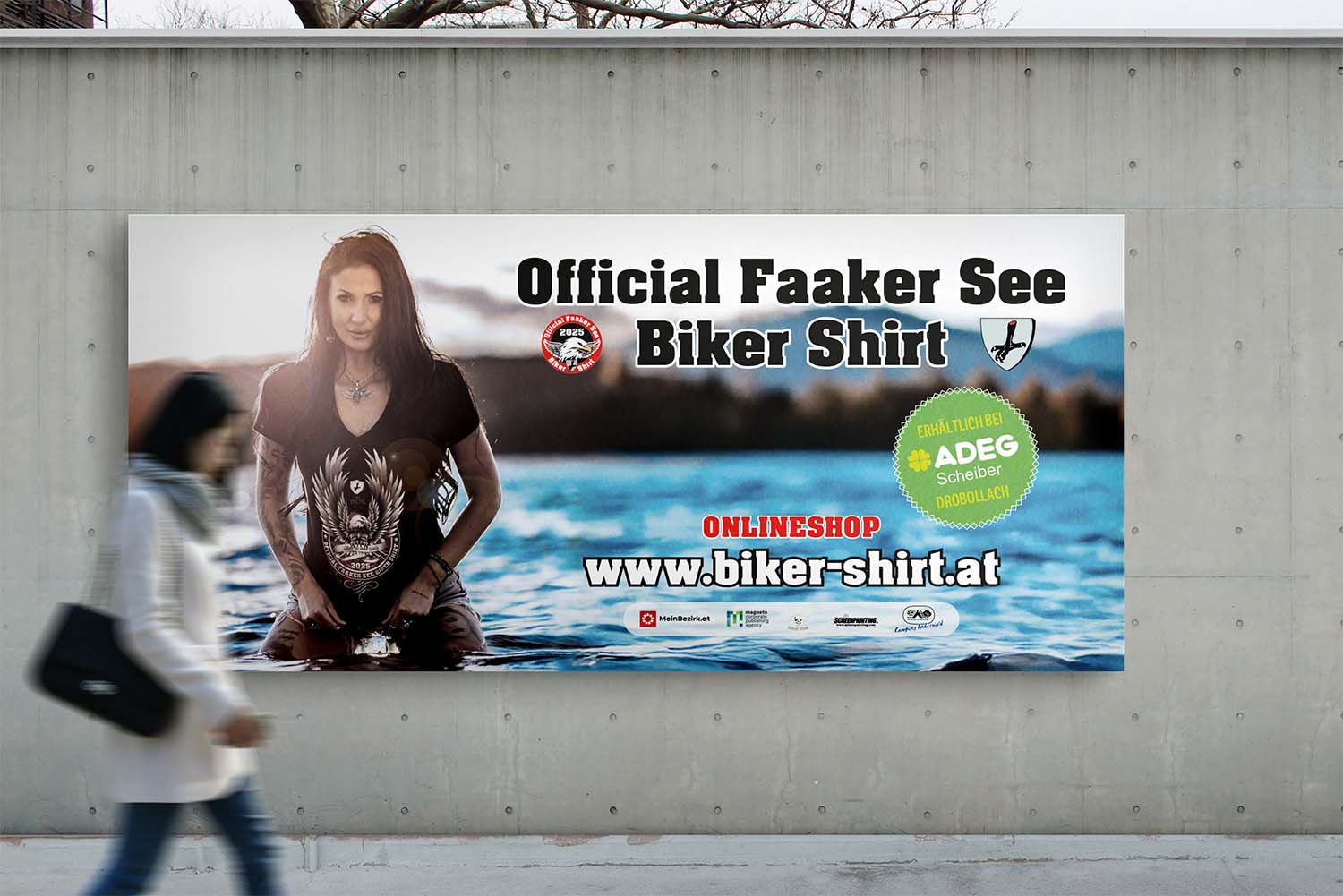 Anlässlich der European Bike Week rund um den Faaker See präsentieren wir mit der Marktgemeinde Finkenstein seit 15 Jahren das „Offizielle Faaker See Biker Shirt“. Die Modelinie zeichnet sich durch ansprechendes Design und hohe Qualität aus und ist bereits im Vorfeld immer heiß begehrt, da nur eine limitierte Anzahl von Shirts produziert werden.